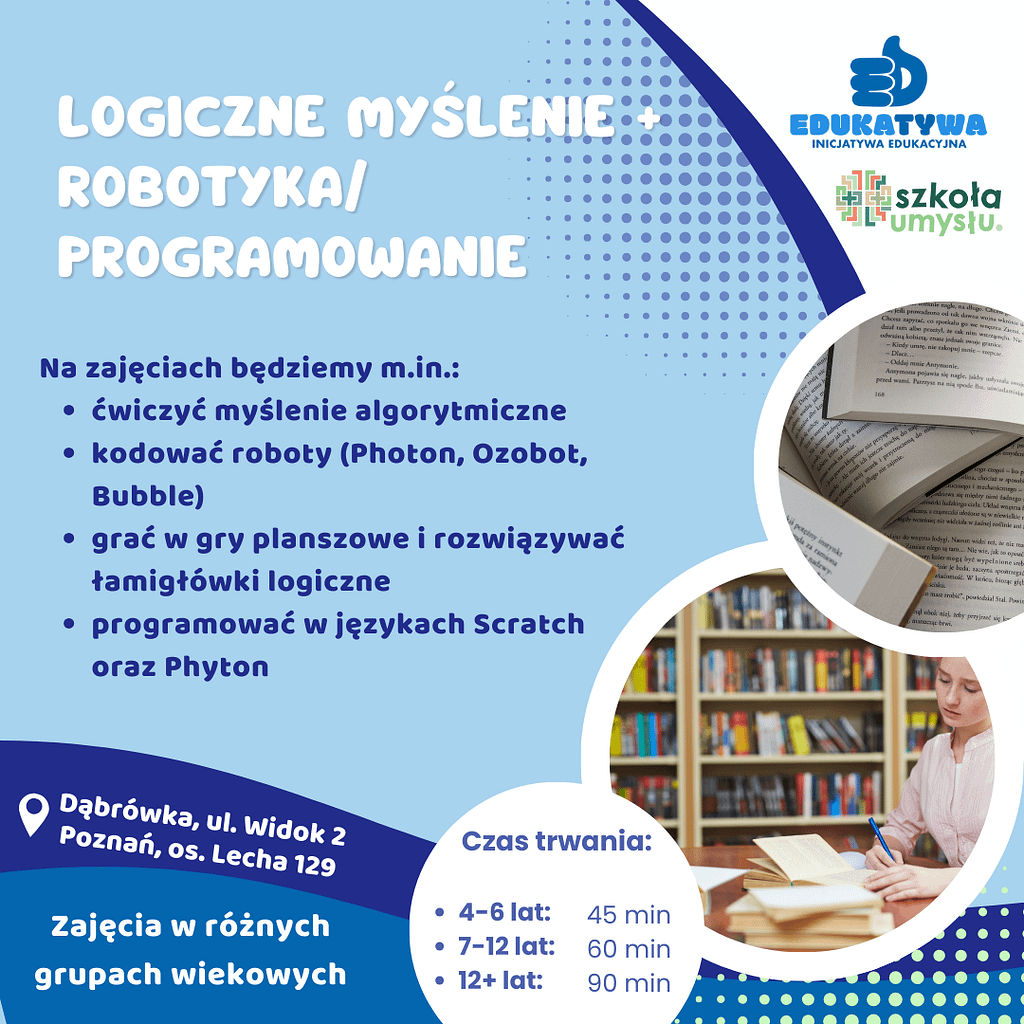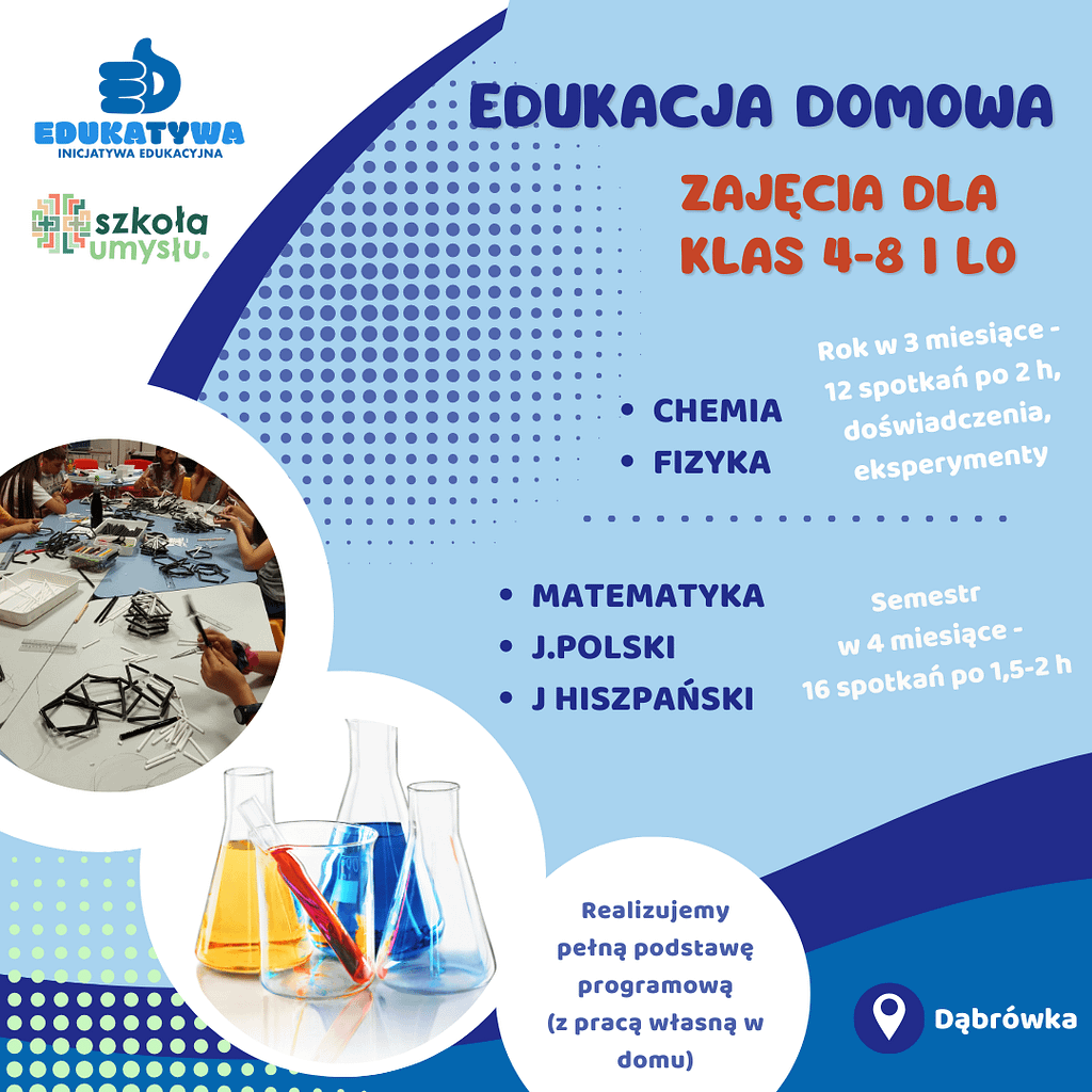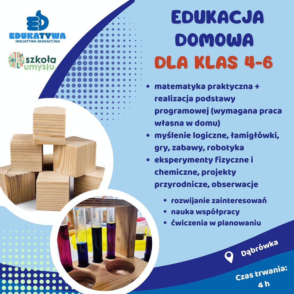W tym roku rozpoczynamy oficjalną współpracę ze Stowarzyszeniem Edukatywa, wspólnie przygotowaliśmy ofertę zajęć dla dzieci w edukacji domowej zarówno w Poznaniu jak i w Dąbrówce.